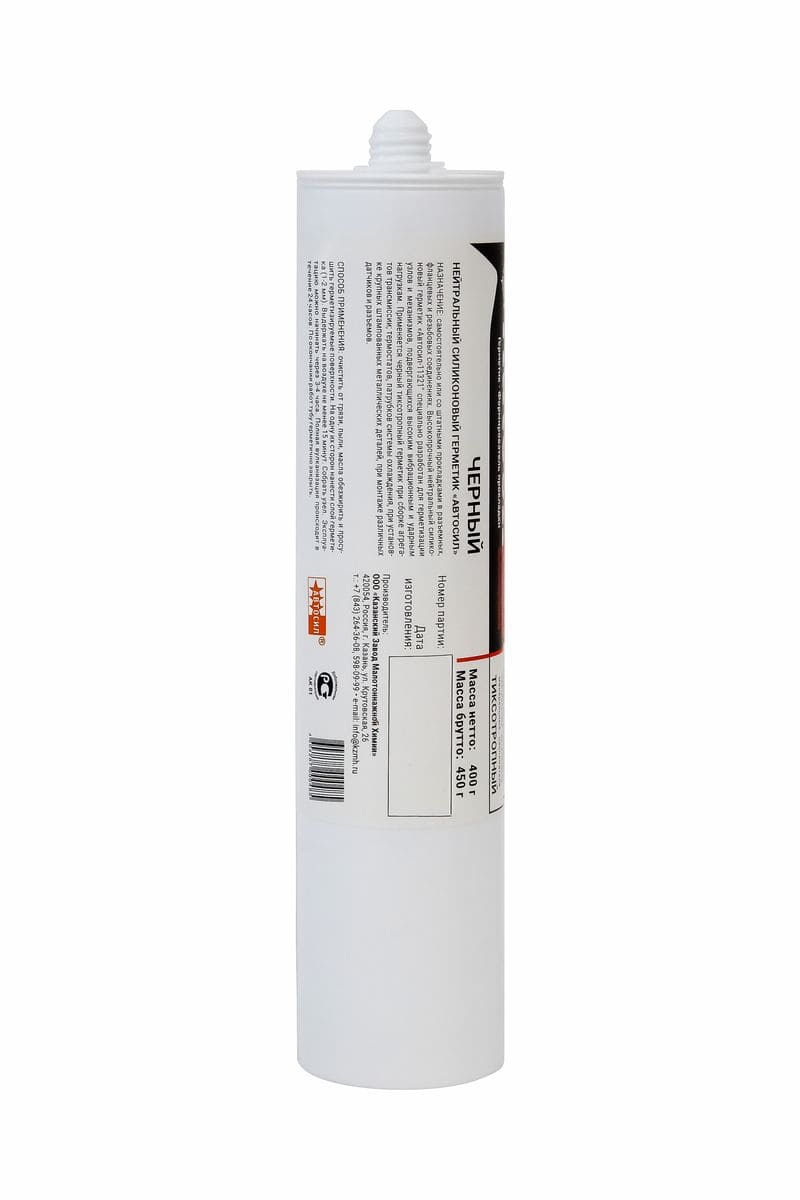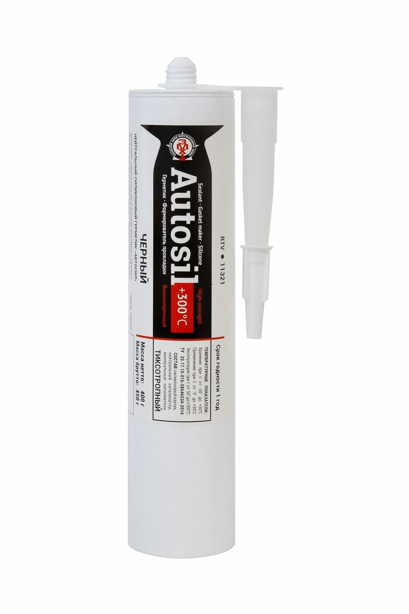 Тиксотропный высокотемпературный однокомпонентный нейтральный герметик черного цвета на основе силиконового каучука, с хорошей экструзией и адгезией эластомера к металлу, резине, керамике. Специально разработан для герметизации узлов и механизмов, подвергающихся высоким вибрационным и ударным нагрузкам. Применяется для формирования и ремонта прокладок в различных механизмах; для соединения крупных штампованных металлических деталей, поддона картера, блока цилиндров, крышки механизма газораспределения, дифференциала; при сборке агрегатов трансмиссии, термостатов, патрубков системы охлаждения и масляных магистралей; при монтаже различных датчиков и разъемов; для герметизации окон ж/д вагонов и автомобильных фургонов; для заполнения больших зазоров (до 6мм), с целью защиты от проникновения пыли.